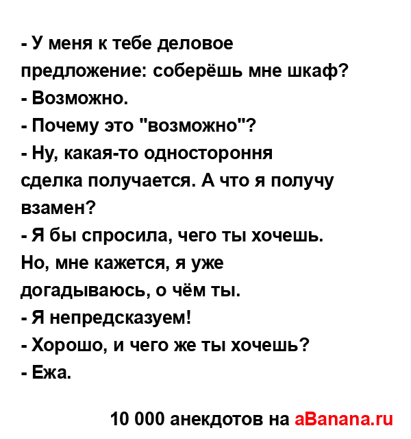 - У меня к тебе деловое предложение: соберёшь мне шкаф? ...