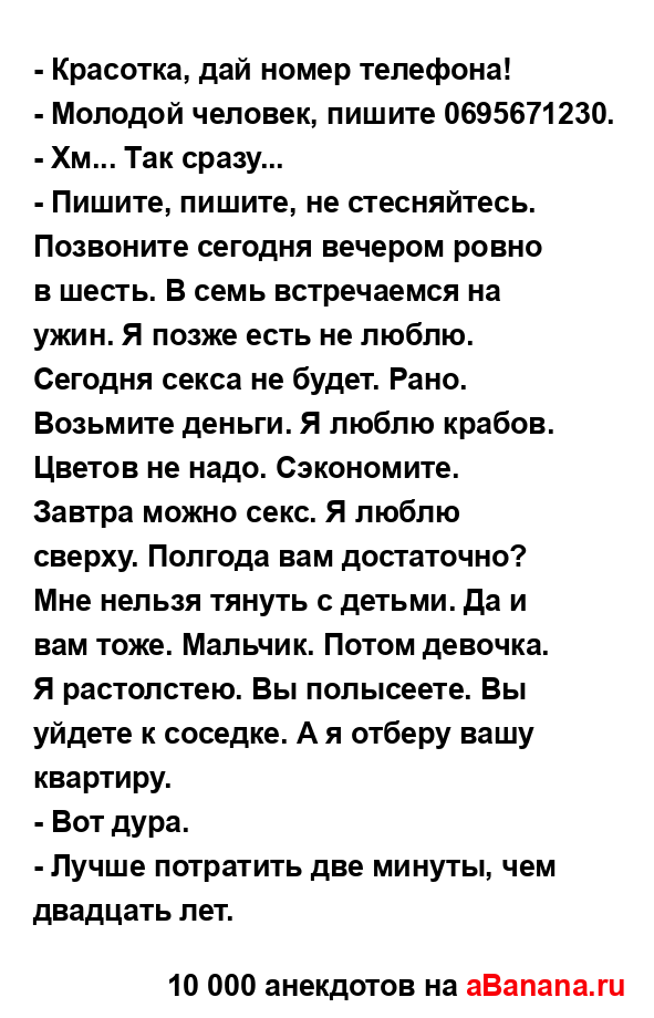 - Красотка, дай номер телефона! ...