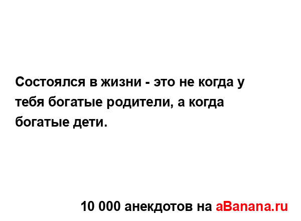 Состоялся в жизни - это не когда у тебя богатые...