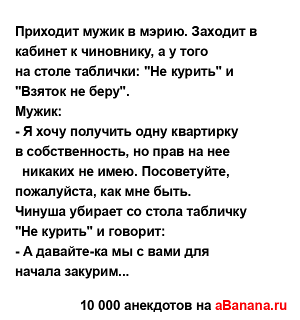 Приходит мужик в мэрию. Заходит в кабинет к чиновнику,...