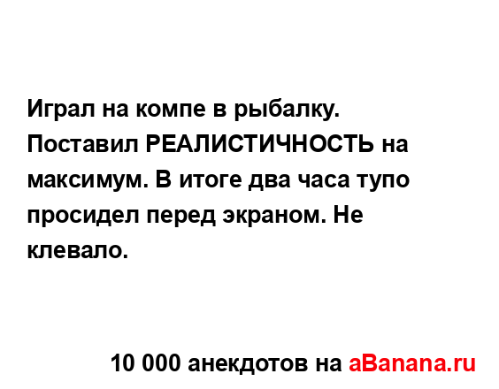 Играл на компе в рыбалку. Поставил РЕАЛИСТИЧНОСТЬ на...