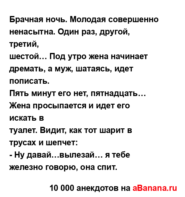 Брачная ночь. Молодая совершенно ненасытна. Один раз,...