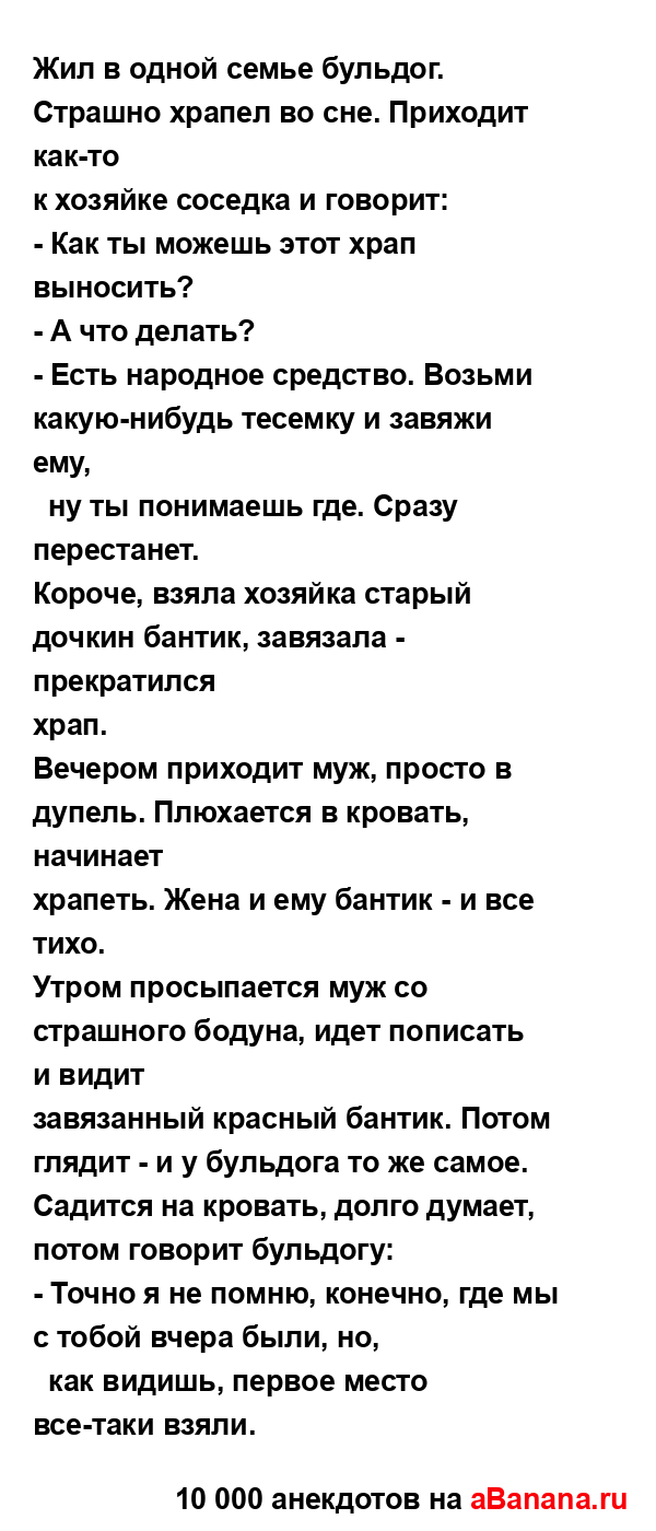 Жил в одной семье бульдог. Страшно храпел во сне....