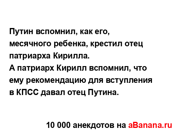 Путин вспомнил, как его, месячного ребенка, крестил...