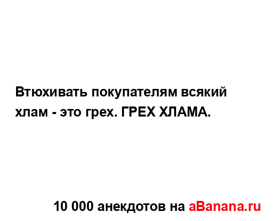 Втюхивать покупателям всякий хлам - это грех. ГРЕХ...