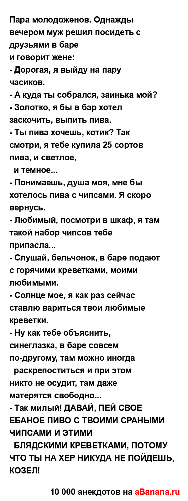 Пара молодоженов. Однажды вечером муж решил посидеть с...
