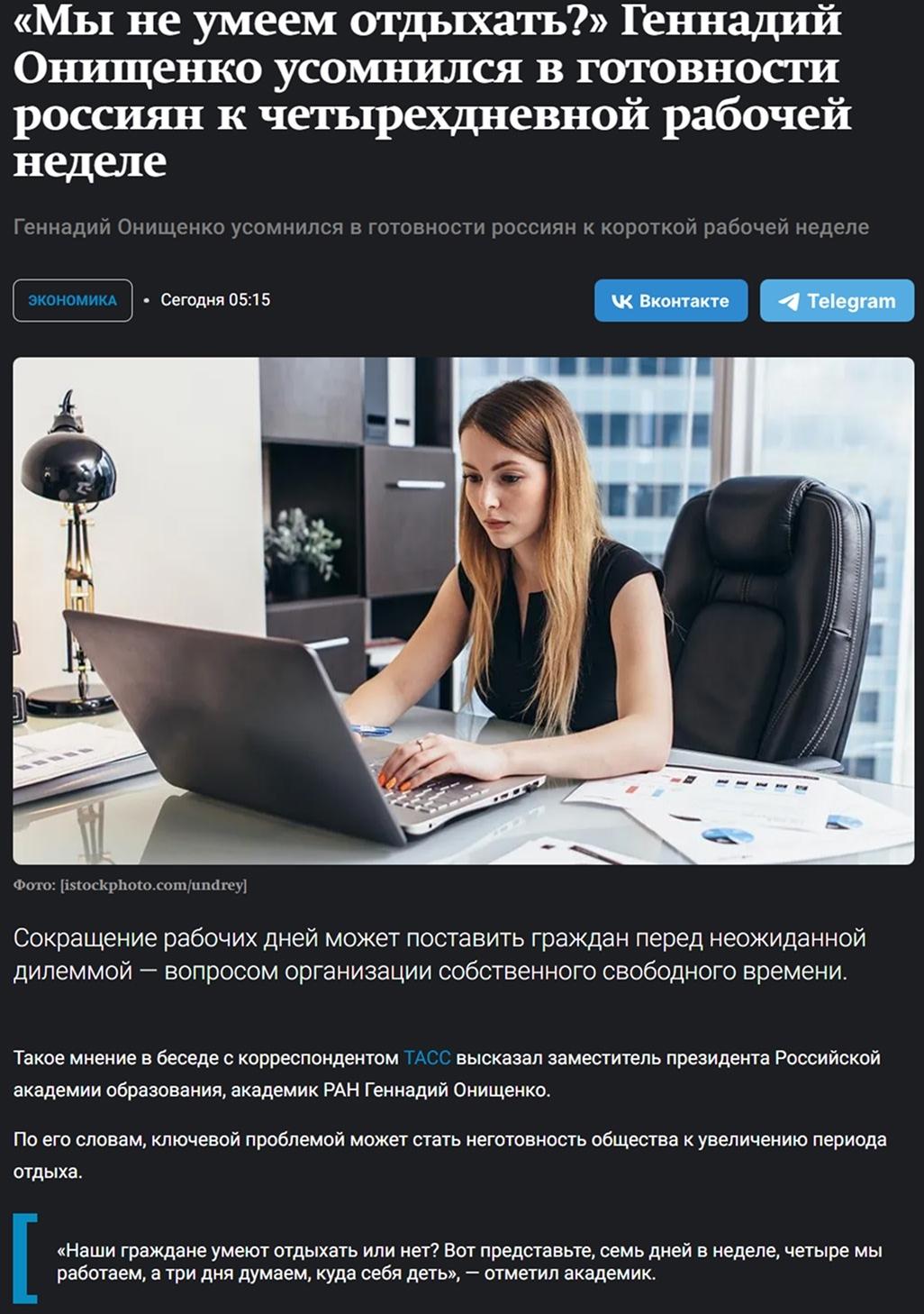 ❗По мнению академиков, большинство граждан привыкли к интенсивному труду, а дополнительный выходной может привести не к отдыху, а к ощущению пустоты и потери режима.