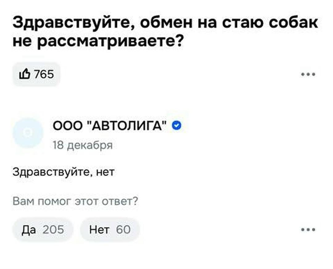 Пользователи спрашивают про «расход матерных слов», интересуются обменом на собак и уточняют, идёт ли в комплекте книга заклинаний, чтобы она поехала. Отдельное сочувствие — менеджеру, который обязан на это отвечать.