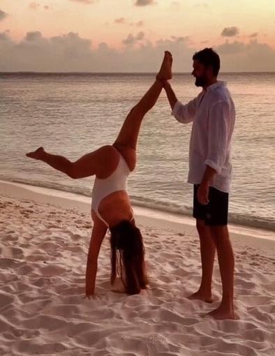 Дубцова решила сделать стойку на фоне безграничного океана. В этом ей помог её избранник. Поклонники певицы отметили, что Ирина находится в шикарной физической форме.