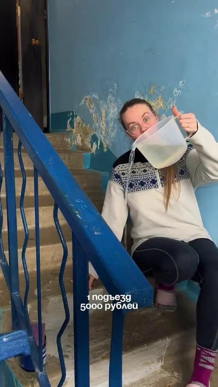 За полный клининг — ручки, батареи, лестницы и подоконники — ей платят примерно по 5 тысяч рублей.