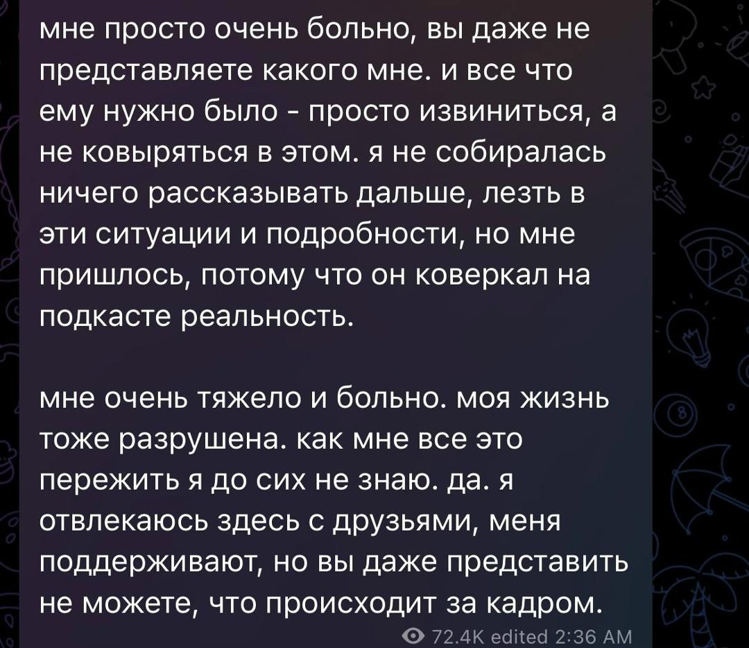 🔵Я не хотела рассказывать все это. Но мне пришлось, потому что в подкасте он коверкал реальность