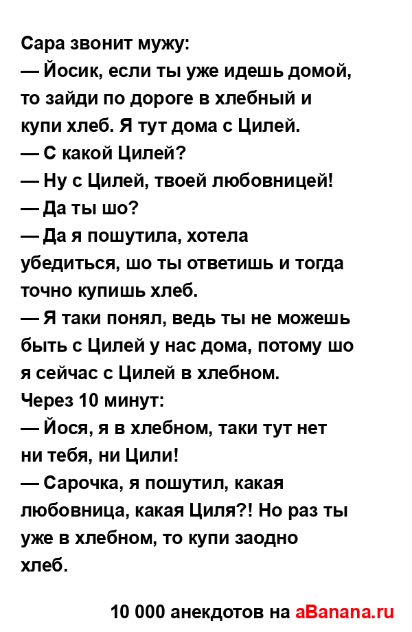 Сара звонит мужу: ...
